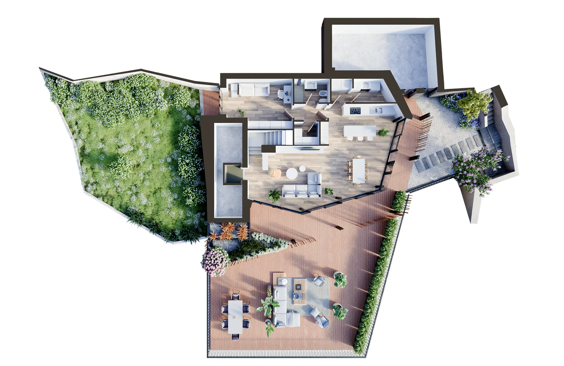 Trasformiamo le classiche piante 2D in rappresentazioni tridimensionali chiare e realistiche. Il nostro servizio di planimetrie 3D permette di comprendere immediatamente la distribuzione degli spazi, i volumi e le potenzialità di ogni ambiente.